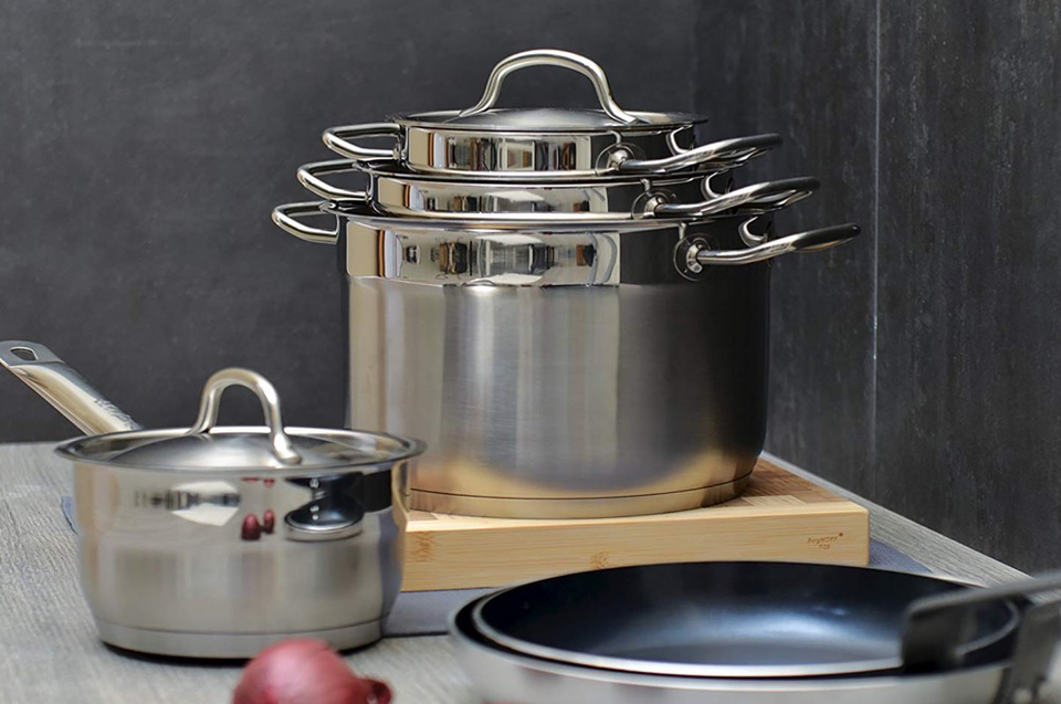 Bekijk hier ons volledige assortiment van luxe pannen-, bestek- en messensets.